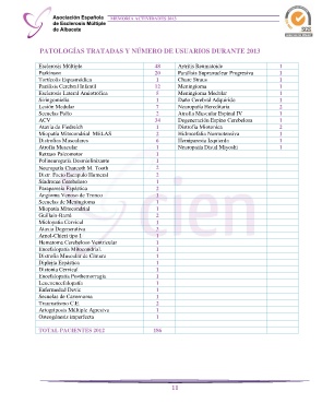 PATOLOGÍAS TRATADAS Y NÚMERO DE USUARIOS DURANTE 2013