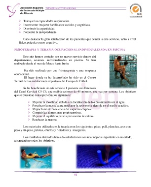 FISIOTERAPIA Y TERAPIA OCUPACIONAL INDIVIDUALIZADA EN PISCINA