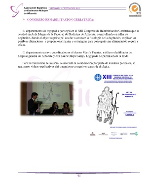 El departamento de logopedia participó en el XIII Congreso de Rehabilitación Geriátrica que se